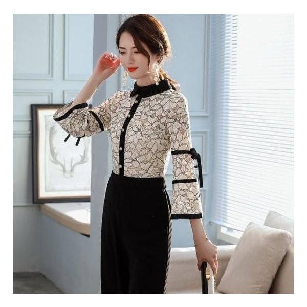 Doresuwe ブラウス長袖 ガウチョパンツワイドパンツ 通勤披露宴二次会